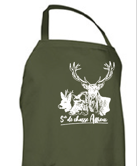 Tablier à bavette et poche personnalisable ! Choisissez le texte à inscrire dans la case prévue à cet effet.